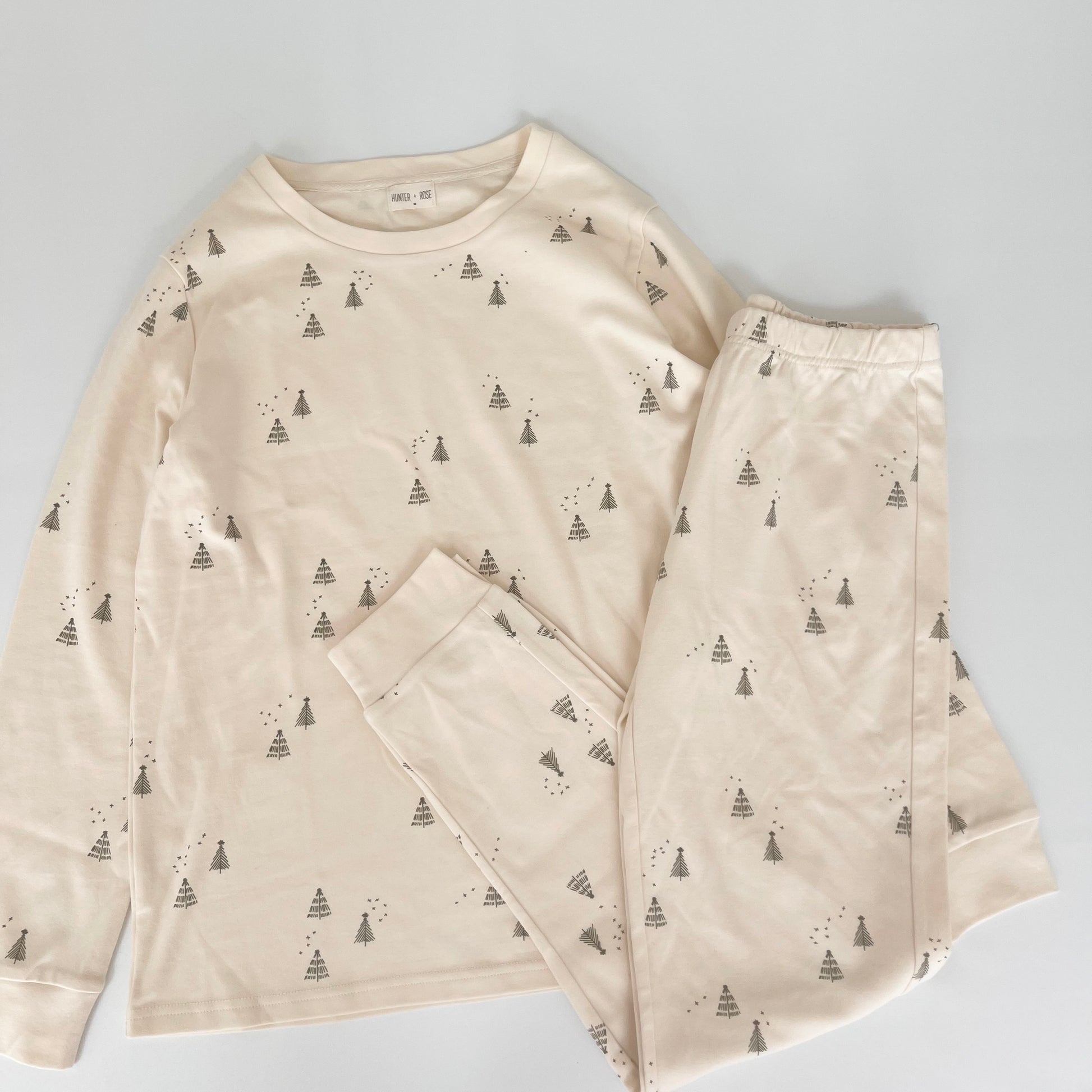 - A Beige  base colour with olive Christmas tree print