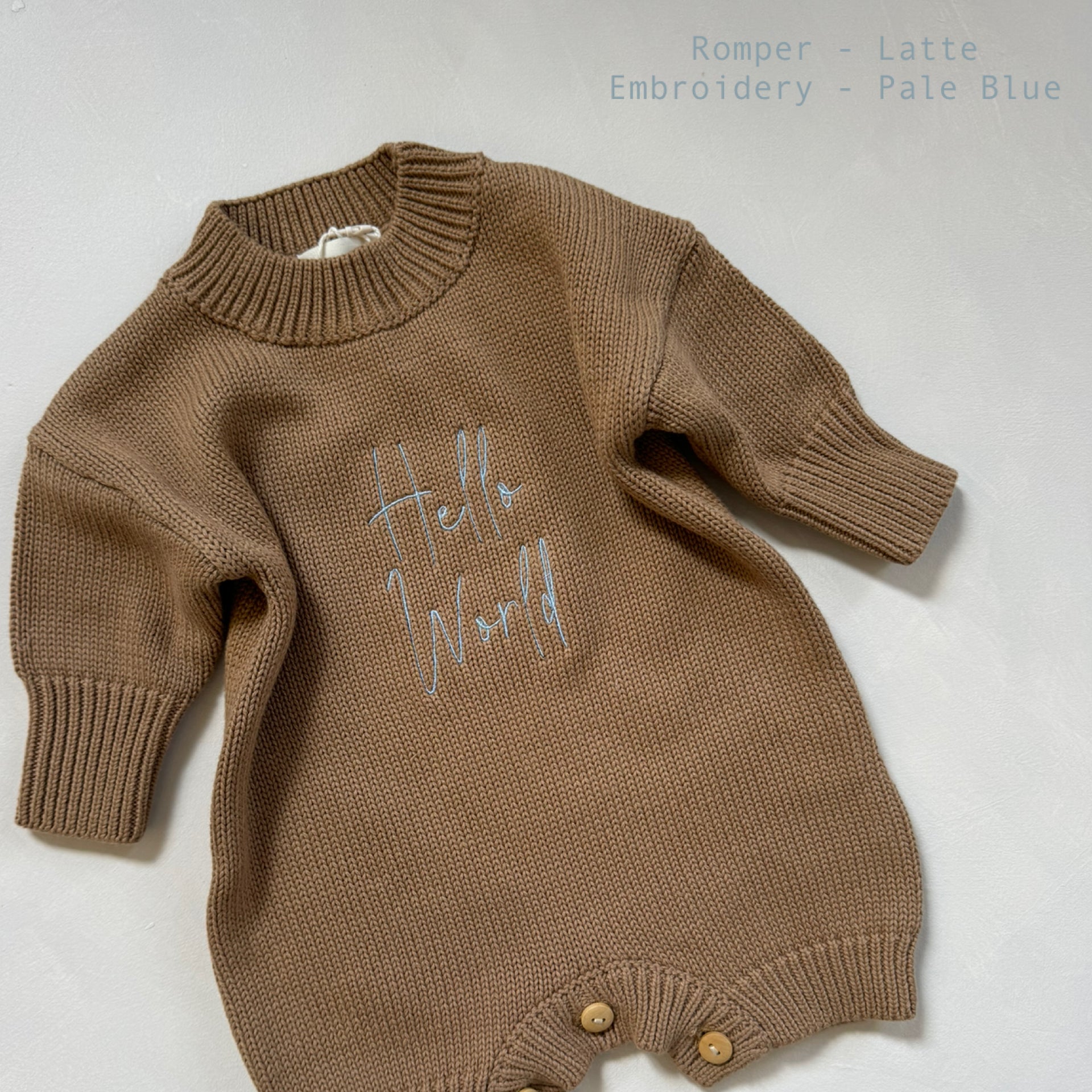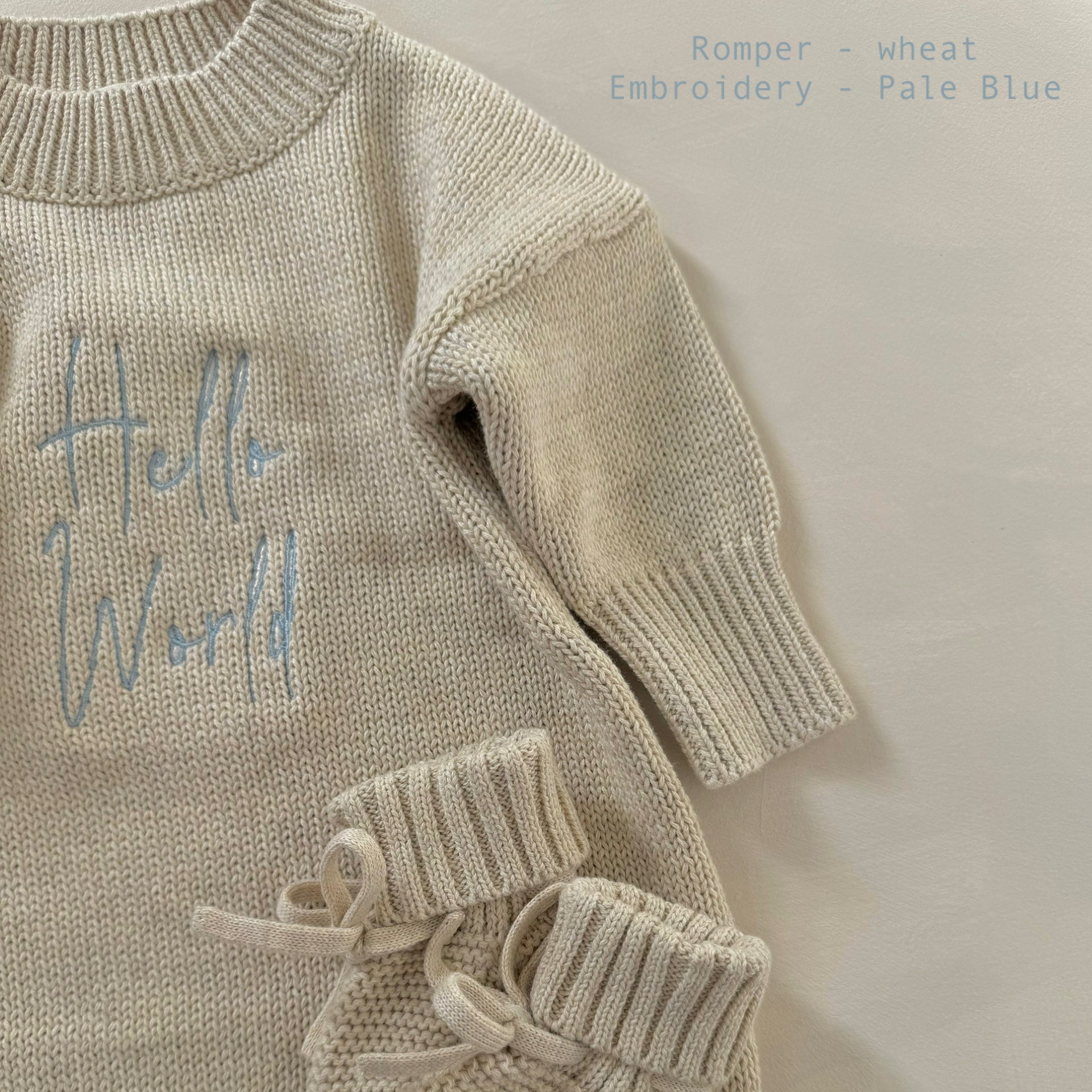 * photographed is our wheat romper with pale blue embroidery