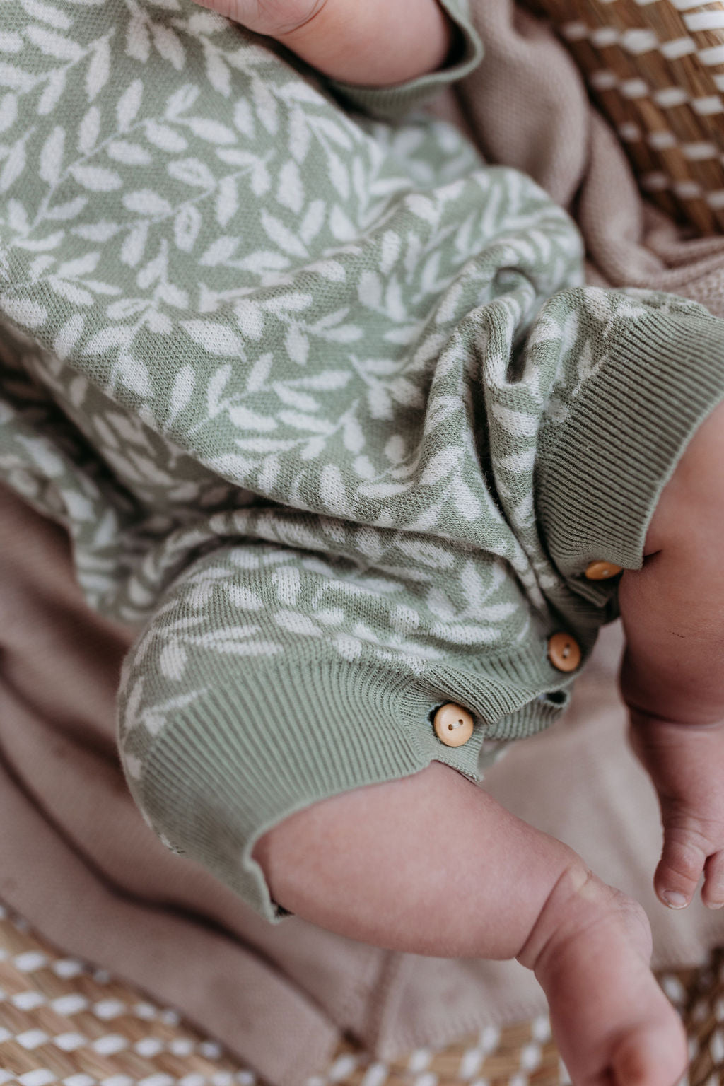 - small wooden buttons to crotch for easy nappy changing