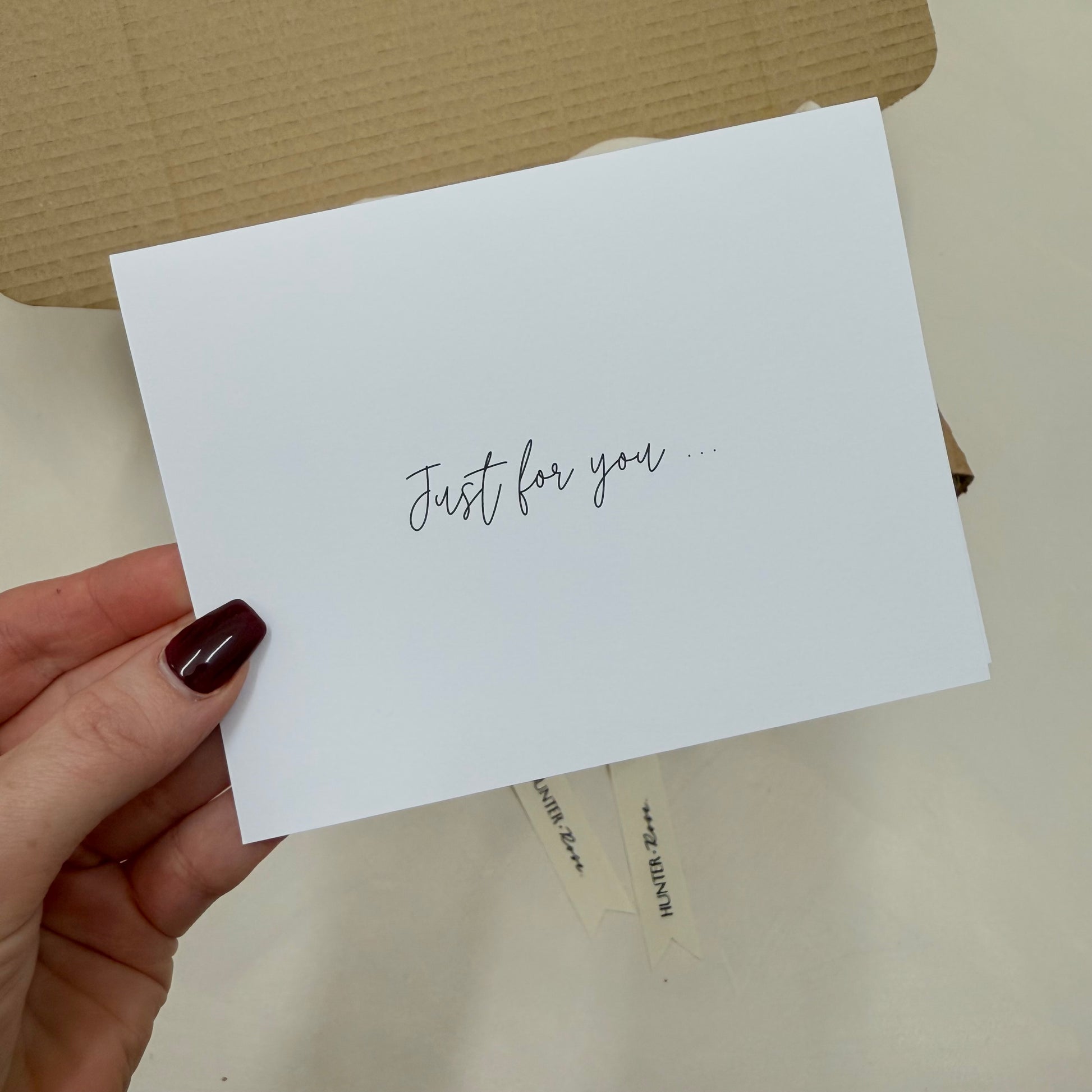 - ‘just for you’ gift card where you can add your own message which will be be handwritten