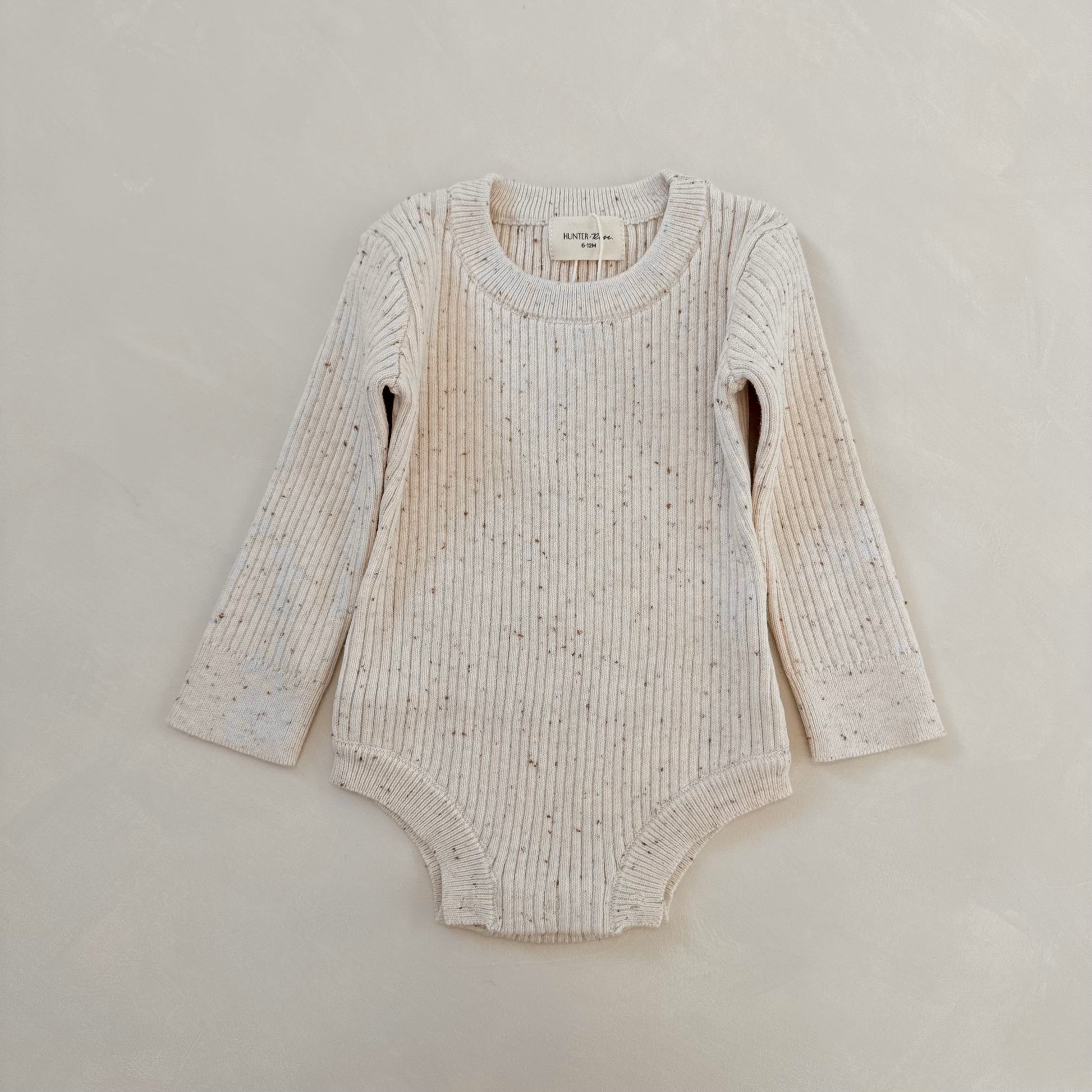 A timeless essential for little wardrobes, the Knitted Bodysuit combines comfort, practicality, and effortless style. Made from 100%  cotton knitwear, this ribbed design offers a soft, stretchy fit that keeps little ones cosy all day long. Designed with poppers at the crotch, it allows for easy nappy changes, making it a must-have for everyday wear. Featuring our signature neutral tones, this unisex bodysuit pairs perfectly with other pieces from our Cocoa Flecked range for a coordinated look.