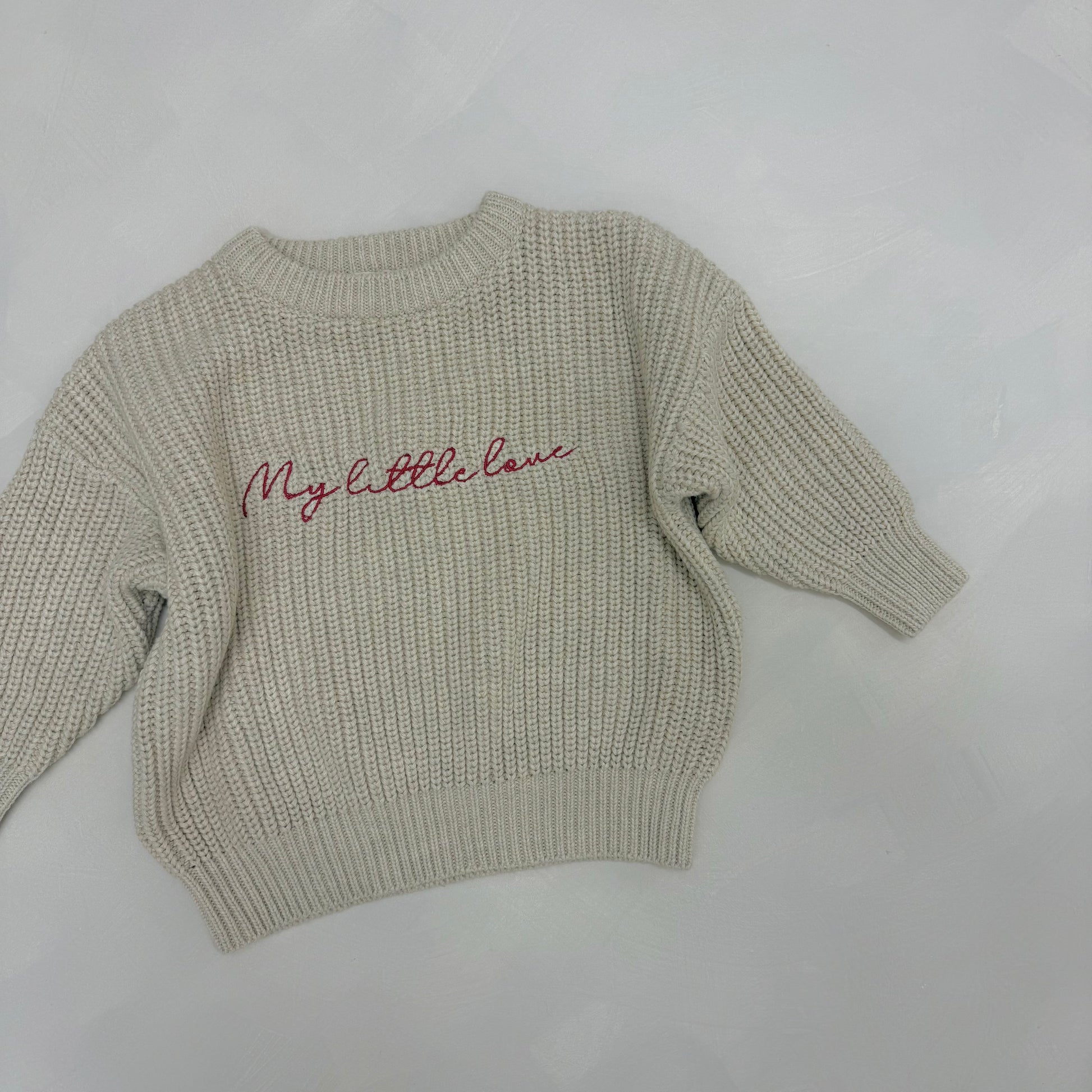 Our My Little Love Jumper  is a cosy Valentine favourite, hearts and bows embroidered on our Wheat Aspen Jumper perfect for celebrating the season in style.